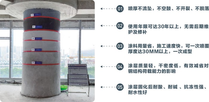 非膨胀型钢结构防火涂料适用于:高层钢结构建筑、工业钢结构厂房、机场火车站、石油化工、防火墙、体育场馆等室内钢结构框架的梁、柱防火保护。具有绿色环保、耐候性强、防火性能优异。