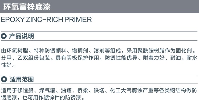 1.能在苛刻条件下使用,并具有长效防腐寿命 2.厚膜化是重防腐,涂料的重要标志 3.附着力强,涂层与基体结合力强 4.高效方便,施工简便 5.使用方法灵活